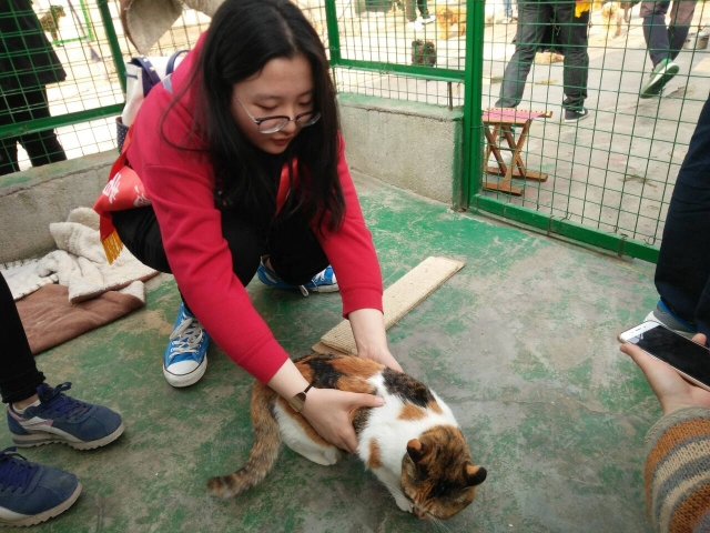 下午12:45,全体志愿者在三食堂广场集合完毕。下午2:30,志愿者到达铜山区棠张镇的小动物救助中心。刚到达救助中心,志愿者们就感受到了小动物的“热情,”周围犬吠声不断。救助中心工作人员告诉志愿者们,收留的小动物以流浪狗为主,其中有很多小狗是被丢弃的,了解到这样的情况,同学们纷纷表示同情。在青协成员的组织下,同学们进行了饲喂动物,与动物嬉戏,与救助中心工作人员交流想法等一系列活动。看到有的小狗的腿有残疾,有的身上的狗毛已经脱落的场景,激发了同学们对保护动物的讨论。其中一个同学表示,动物是人类的好朋友,保护动物是一个长久的过程,需要社会每一个人的努力。