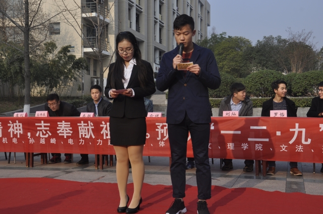 因本次活动要求各学院运动员提前半小时到指定位置出示校园卡或员工证完成检录,故8点30分,各学院参赛运动员都已到达桃苑广场,有序出示证件进行检录。9点,开幕式正式开始。首先两名主持人致欢迎词并介绍了出席本次活动的十四个学院的员工会主席以及一二·九长跑活动的目的和意义。接下来机电学院主席刘灿就本次活动的历史意义发表讲话,简单介绍了一二九运动,他倡导作为新时代老员工的我们应该传承和发扬一二九运动所体现的爱国主义精神,为社会主义现代化建设作出贡献。