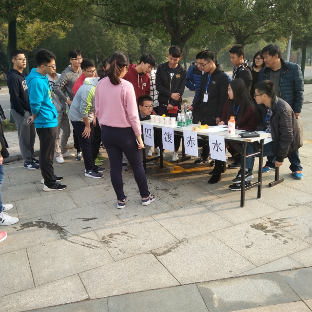 早上八点四十整,在裁判的号令下,比赛正式开始。本次活动以马拉松的形式开展,其中在途中设立答题关卡和活动关卡,答题成绩与马拉松成绩各占最终成绩的50%。参赛选手以小组形式进行参赛,以图书馆作为比赛起点,在裁判的号令下一同起跑,在行健路上设立七个答题关卡,每组选手需在两圈跑步过程中完成所有关卡设立的题目。7个关卡分为两个理论学习类试题关卡,两个活动类关卡,一个体育竞技类试题关卡,一个英语类试题关卡,以及一个表演类试题关卡,每个关卡设有题目,每组选手需抽取三道题共同完成。每个关卡答题完成后由关卡负责人记录成绩,最终成绩以关卡答题成绩和马拉松的成绩进行排名。