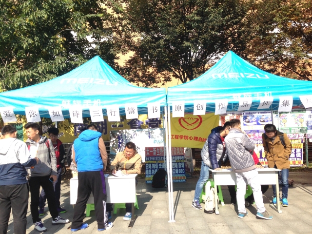11月4日,为了丰富同学们的生活,陶冶同学们的情操,威廉希尔williamhill中文联合电力工程学院、矿业工程学院等学院的心理自助中心于各食堂广场举办三行情书活动。