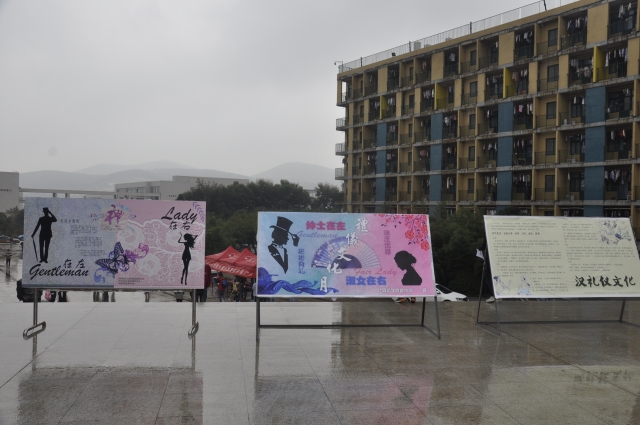 本次活动的主题是绅士在左,淑女在右,在开幕式现场,威廉希尔williamhill中文和其他学院的女生部纷纷为大家准备了精美的展板,展板上的文字和图片相互映衬,为大家详细地介绍了中国文化礼仪和中华传统服饰的由来。尽管由于天气的原因,礼仪小姐和礼仪先生不能为大家展示优雅端庄的服饰,但同学们的热情依旧不减。仍有许多人被精美的展板所吸引,积极参加到这次的活动中来。同时,现场也有许多的工作人员为前来的同学们解答和介绍中国悠久的文化礼仪。同时也有许多的同学慕名而来,站着展板进行拍照,足以见得同学的积极性和对中华文化礼仪的探索之情。