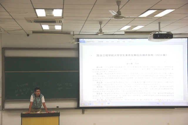 9月19日晚,安全学院15级于博学1楼c104开展年级大会。本次年级大会由辅导员何伟民主讲,15级全体同学参加了此次会议。