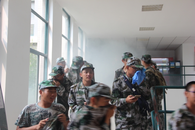 在警报声响起后,演习正式开始。同学们按照事先老师的要求用湿毛巾捂住口鼻,有组织地穿过层层烟雾从宿舍里跑出来。其中,有被浓浓烟雾阻挡视线以致落在后面的员工也在同学们的帮助下走出宿舍。不多时,全体16级新生逃出宿舍,完成演习。演习结束后,陶冰冰老师将同学们召集在一起,向同学们讲解了此次演习的重要性并一一指出新生们在演习中表现的优缺点,提醒同学们要重视消防安全。