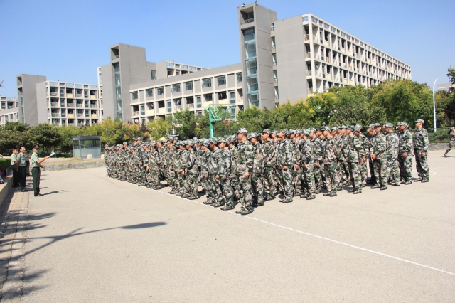 下午两点,郑文奇老师组织新生在篮球场集合,有序地站好队伍,等待教官来到。两点半,教官如时到场。首先,辅导员孙留涛讲了每天军训的时间和纪律,并向新生介绍了教官,大家热烈鼓掌。随后,教官鼓舞了新生的士气,他讲到:现在天气还比较热,但是不要怕,教官会时刻跟你们在一起,希望你们在军训中能够有所收获。最后,郑文奇老师询问新生有没有鞋不合适的,鞋小的互相换一下,营造一个舒服的军训环境。