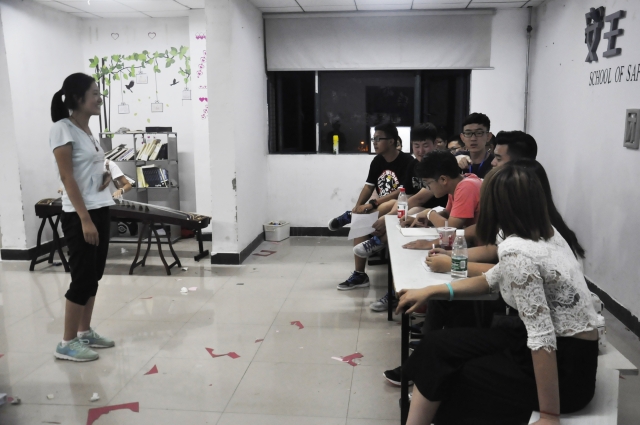 八点整,文艺部全体人员悉数到场。紧接着,新生陆续到场。首先,一位新生演奏了古筝,尽管她略带羞涩,称自己已经半年没有弹过古筝了,但琴声悠扬,吸引了所有评委。随后的两位新生竞选主持人,评委让每位同学读一份主持稿,同学们发音清楚,声音洪亮,让评委们眼前一亮。还有一个女生弹奏吉他,入选上届十佳歌手前十的李誉廷亲自指导,两人沉迷于音乐中。最后上场的两位女生表演舞蹈,舞姿婀娜,动作流利。所有新生得到评委们的一致好评。