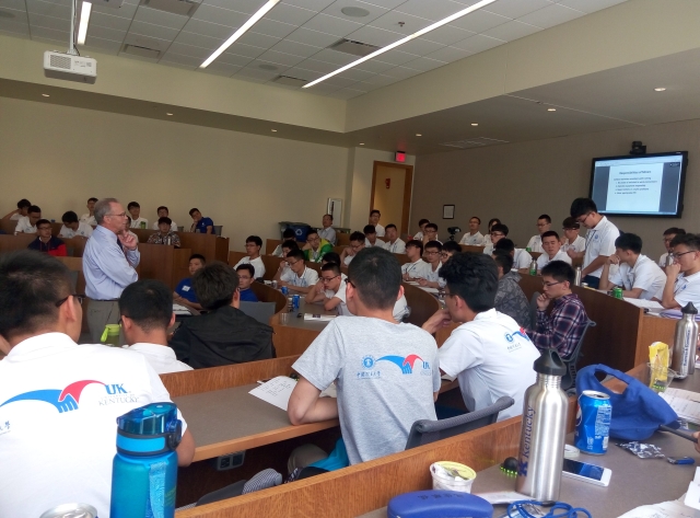 上午8时,实践团在肯塔基大学Woodward Hall 307室聆听讲座。8时至12时,肯塔基大学矿业工程学院教授Zach Agioutantis为同学们介绍采煤方法,同学们认真聆听,积极与教授进行交流。13时至16时,肯塔基大学特聘教授Ken Katen为同学们介绍美国采矿安全相关情况,Ken Katen从事矿业工作四十余年,经验丰富,将实践与理论结合,加以幽默风趣的授课方式,就美国款山安全历史及相关政策措施进行了详尽介绍。同学们积极提问,收获颇丰。16时30分,在肯塔基大学商学院副经理Nancy和指导老师戚绪尧的带领下,实践团同学们参观肯塔基赛马场,先后观看纪录片,参观博物馆并与赛马场工作人员交流,探询美国赛马历史和文化。