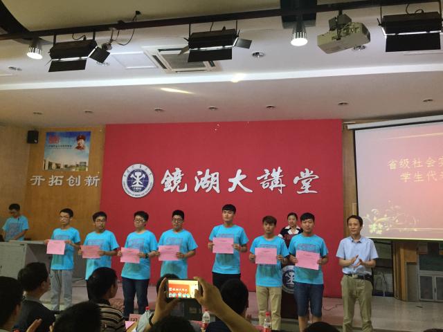 6月20日下午,为见证2016年暑期社会实践的开始,安全学院在镜湖大讲堂一楼参加了以“信仰责任未来,争做时代先锋”为主题的老员工暑期社会实践的出征仪式。出席本次出征仪式的有公司党委副书记曹德欣、安全公司党委副书记钱雄、辅导员孙婷、学校各部门领导老师。各学院实践团队员工代表参加了此次出征仪式。