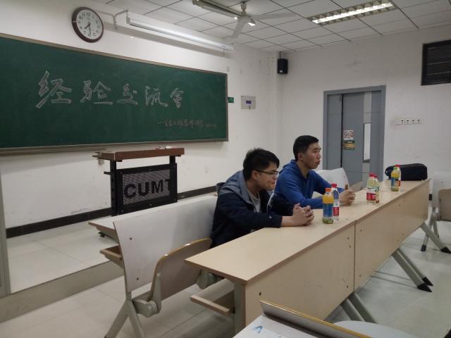 晚上7点,全体同学到位。7点20分,随着两位优秀毕业生的到来,班长宣布经验交流会正式开始。首先班主任李楠老师就以一种幽默诙谐的方式介绍了两位参与交流会的大四学长,何俊江保送到了中国科学技术大学,贾海珊拿得了直博矿大的机会并在澳大利亚卧龙岗大学访学半年。交流会上,两位优秀毕业生首先给同学们讲了学习的重要性,随着又讲到了学习的方法。何俊江表示学习重在效率,上课的时候,自习的时候,多用心,才会有效率,贾海珊则讲到无论是学习工作还是生活,都要有决心,并坚持努力下去,他还讲了关于出国访学的申请流程,以及保研和夏令营等一些相关情况。最后李楠老师就本次经验交流会作了总结,并表示大一主要是清楚自己的方向,无论是学习还是工作,尽早地为自己确定了一个目标。
