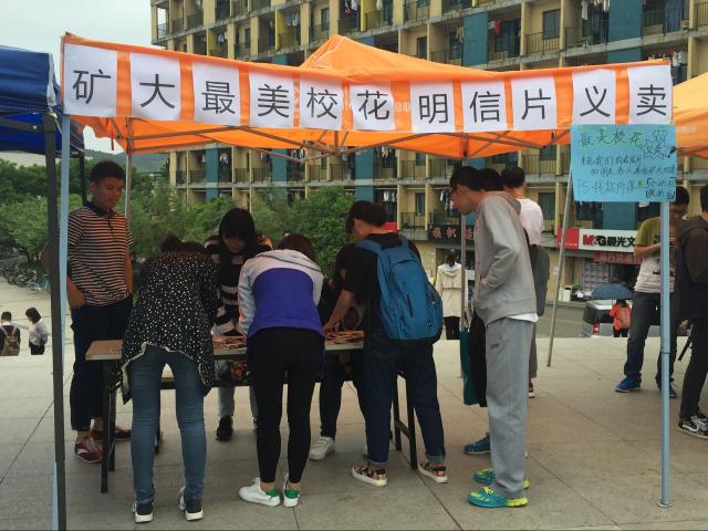中午12点,“校花义卖”活动正式开始,由于下起小雨,路过同学比较匆忙,但在参与此次的活动志愿者激情带动下,路过的同学纷纷停下脚步,通过热情的讲解,同学们了解此次活动的内容主要是征集最美校园之花,并让评委挑出其中30张做成明信片,进行为期三天的义卖活动,最后将义卖的钱全部捐献给边远贫困地区的孩子之后,同学们纷纷拿出手机扫描了此次活动的二维码,进行“校花义卖”活动关注及发送自己心中的最美校园之花。在此过程中同学们还相互建立了一个关于摄影爱好的微信公众号,希望在日后能互分享最美校园风景的照片,此次活动于下午1.30结束
