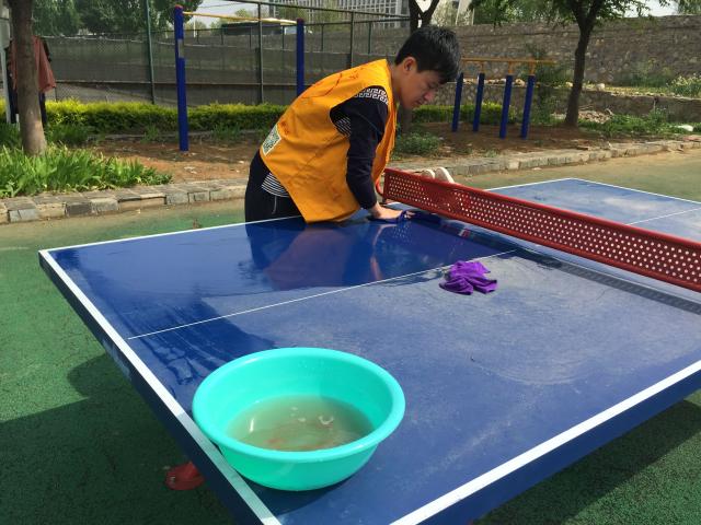 下午两点,同学在梅三宿舍楼集合完毕,并到达梅三宿舍楼与梅二宿舍楼之间的单双杠以及操场旁的单双杠进行清洁。清洁之前,同学们被分为两组,一组负责擦拭运动器械,另一组负责给水盆换水。在清洁过程中,有同学表示,运动器械上有一些难以擦拭干净的胶带,尤其是操场上的运动器械上残留胶带的现象更为严重,希望同学们能好好爱护学校公物,保持公物整洁。随后,同学们前往操场旁和网球场旁的乒乓球台进行清洁,并清除干净乒乓球台上的杂物。在整个清洁过程中,同学们相互协作,不嫌脏累,还时刻留意地上有无废弃垃圾,并将其一一拾起并扔进附近垃圾桶。经过两个小时的辛勤劳动,活动于四点圆满结束。