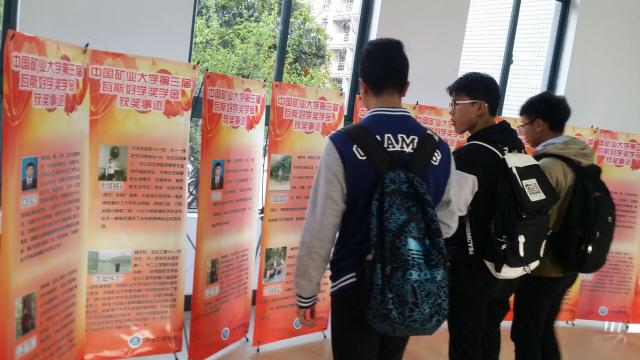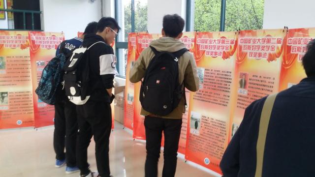 表彰展板先是送到梅三宿舍楼外面,然后由员工一个个搬进,并有规律的搬到一楼的一块较为空旷的地方。展板还没有完全被搬进来,就有同学迫不及待的跑到展板前面去看那些获奖同学的照片和简介。他们时不时的还会发出一声声惊呼,感叹那些获奖同学的成就。有的同学在看完这些展板之后,眼中充满了坚定,好像下一届瓦斯好学奖学金获得者一定会有他们似的。有的同学还会用自己的手机拍下来每个展板的照片,好像以此来激励自己接下来的学习。展板被陆续搬进,看展板的同学也越来越多,三两个在一起,或议论,或共勉。同学们断断续续,每个刚进宿舍楼的同学都会去看表彰展板,所以展板前面的同学一直没有断过。