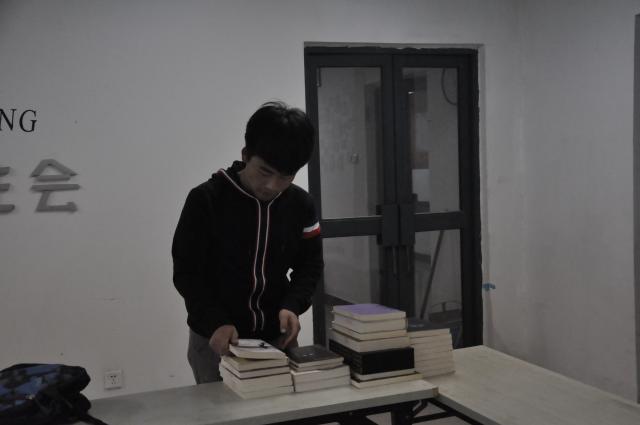 当日晚7时,活动正式开始。学习部的同学们将已有的“一人一本”书库的书籍进行分类整理并检查书库书籍情况,同时,陆续有同学们过来还书,学习部的同学们将回收来的书整理并搬运到书库保持。9时多,图书差不多收集完毕,活动结束。