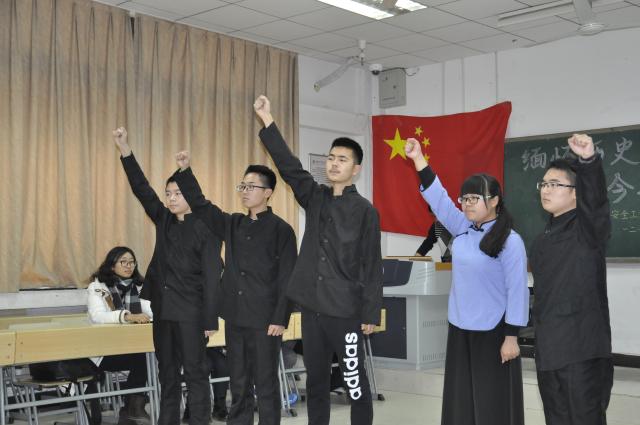 首先,主持人向到场嘉宾表示热烈欢迎并宣布本次团日活动的正式开始。伴随着一二·九背景的旁白介绍,话剧演员登场,为大家真实重现了“一二·九”员工运动的片段。随后,《中国军魂》伴奏响起,全场起立共唱激昂军歌,与此同时,团支书登场,为同学们介绍一二·九运动发生的背景、组织者、参与者及其产生的一系列影响等,并邀请同学们分享他们所了解的,“一二·九”员工运动中鲜为人知的感人故事。同学们听后无不感触良深,他们神情肃穆,颇有所思。接着,诗朗诵的同学用铿锵有力的语调,带动整个团支部成员情绪高涨。而接下来的一二·九知识竞答环节则让同学们更深入地了解到了更多历史知识。最后,同学们围绕一二·九员工运动所带来的现实意义展开了激烈辩论,争相阐述自己的观点,充分体现出同学们铭记历史,用积极合理的方式表达自己的爱国情怀。