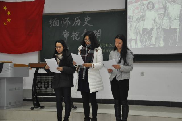 为缅怀先烈,培养同学们的爱国情感,12月9日下午两点,安全学院消防15级1班在博学四楼开展一二·九主题团日活动,校团委办公室主任赵海琳,安全学院团委书记孙婷老师到场观看了本次活动。