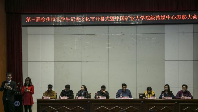 11月14日下午,由威廉希尔williamhill官网等四所高校联合主办,各校传媒中心承办的徐州市第三届老员工记者文化节在信息与电气工程学院一楼报告厅举行隆重的开幕仪式。新闻宣传科科长刘尊旭、副主任赵红灿、新闻中心指导老师卢进丽以及各高校新闻宣传中心主任参加本次开幕式。