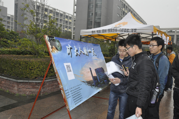 在活动开始之前,工作人员便将活动所需的展板、帐篷以及桌椅准备就绪。中午十二点,活动正式开始,工作人员向同学分发宣传单,引导同学扫二维码的方式,让同学了解并且参与活动。活动中工作人员细心地讲解,吸引了众多同学的目光,赢得许多同学的支持和参与。据悉,此次活动为喜欢摄影,喜欢分享身边人和身边事的同学提供了展示平台,收集同学们随手记录下矿大人一天的所见所闻,让平凡的一天变得非比寻常。