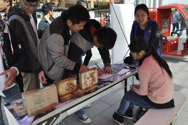 中午12点半,活动正式开始。安全学院生活部成员早早来到活动现场,他们分工明确的支起帐篷,拿出两张印有比赛开始时间,比赛地点,比赛奖励的以三国杀人物为背景的海报,又拿出了几幅精致的三国杀全套卡牌,放在桌上,压着几张绚丽的人物海报。随后安全学院生活部部长布置几个部员去发送比赛传单,还有一位部员被安排负责报名表的填写情况。分工明确后,他们有条不紊的工作着,没过多久,填写名单的同学便络绎不绝,一张报名表被填的密密麻麻,社交游戏社的社长也很是开心。