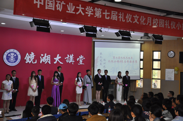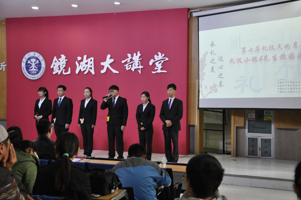 比赛分为礼仪展示,礼仪知识抢答和女生部部长答辩三个环节。在礼仪展示的过程中,翩若惊鸿的舞姿,宛如天籁的歌声,余音袅袅的丝竹声,精彩纷呈。各个参赛选手犹如八仙过海,各显神通。选手们通过舞蹈,歌唱,朗诵,情景剧等不同形式向我们展示亘古亘今礼仪的魅力。此环节中,安全学院选手古丽孜热优美的舞姿,赢得了大家的热烈掌声。随后的知识抢答更是激烈,机电学院的选手表现尤为突出。在部长答辩环节中,各部长用简短清晰的话语总结了各自学院在礼仪文化月举办的各项活动及成果。最后,经过大众评审团的投票,来自资源学院的礼仪小姐和徐海学院的礼仪先生获得礼仪大赛的冠军。