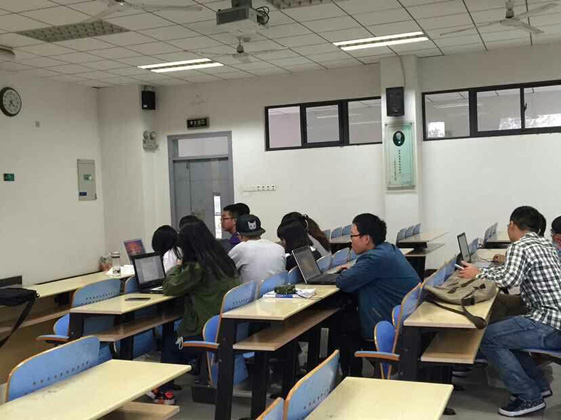 据悉,两位部长之前便上传了相关教学视频和软件压缩包,统计培训人数,向各处寻借电脑,以确保培训效果。培训伊始,部长王晨在台上进行了PS图层拷贝,图层移动等基本操作演示,台下同学则跟着一起动手。为了实现学教合一,让部员跟上进度,另一边副部长辛正浩则在台下对各个部员进行详细指导。操作过程中,部员提出自己的疑问,部长耐心解答,整个培训工程氛围十分融洽,同学们兴致勃勃,乐此不疲。