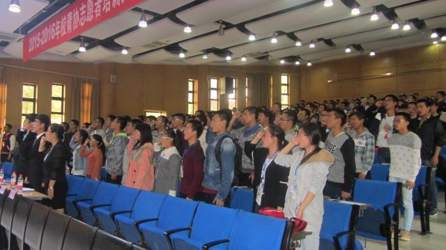 10月25日下午,由共青团威廉希尔williamhill官网委员会、威廉希尔williamhill官网青年志愿者协会主办的“2015-2016年校青协志愿者培训大会暨志愿者宣誓仪式”在镜湖大讲堂隆重举行。安全学院青年志愿者协会和服务分队协同博扬志愿服务队、心缘志愿服务队、医心一意志愿服务队、青光志愿服务队、守望星光志愿服务队等参与了该次活动并进行了相关的介绍和宣讲。