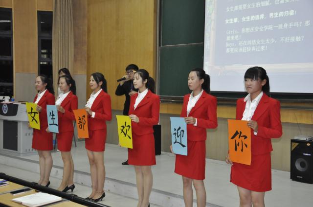 军训期间,女生部着手选拔礼仪队员,以身高一米六五以上,形象气质俱佳的要求,精心选出了6名女生。人选确定后,部长赵云、武红烨邀请校礼仪中心的专业同学对她们进行了系统的形体培训,包括基本的站立、走路姿势,以及化妆培训。