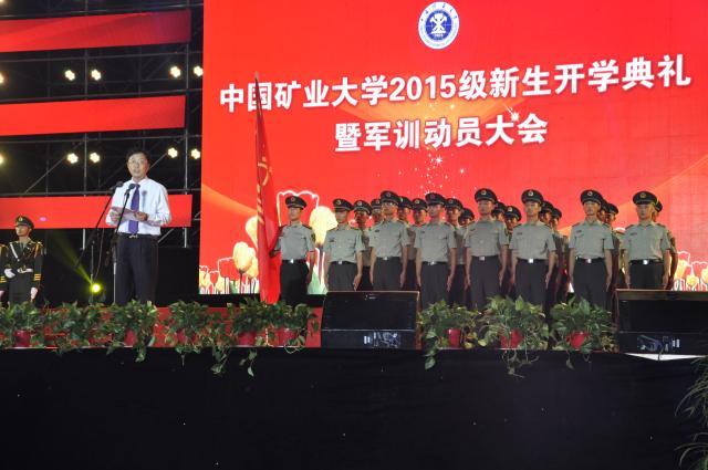 本次典礼由威廉希尔williamhill官网党委副书记曹德欣主持,董事长葛世荣等领导以及院士均出席现场。董事长上台葛世荣致辞,他向在场全体新生介绍了矿大的历史,教育理念以及专业特色,并对同学们提出了希望与祝福,葛董事长生活活泼的语言赢得了台下阵阵掌声。接着,各学院领导发表讲话,安全公司党委书记章毛平侃侃而谈,他以饱满的热情鼓励15级的新生们学好专业知识,在大学的广阔蓝天下尽情翱翔。同时,安全学院员工会主席崔捷也与全校新生见面。仪式最后,曹德欣书记宣布2015级员工旅组成,并授军训旅旗。随后,同学们在活跃的气氛中观看了新生文艺演出,安全学院“十佳歌手”哈森为大家献上歌曲串烧《胜利之歌》,博得现场一片喝彩。