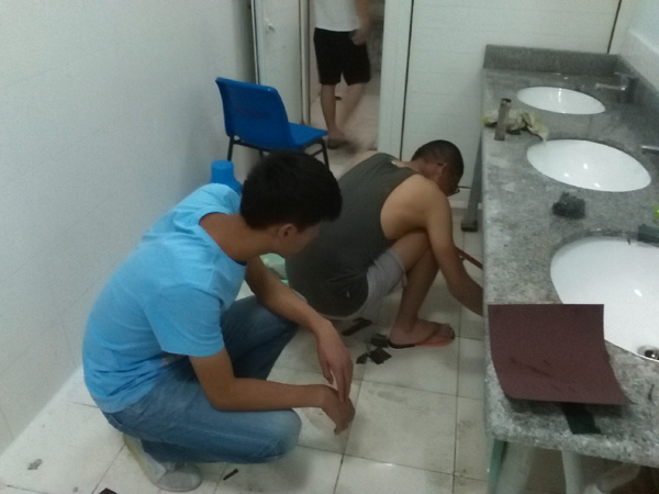 经过了前几天的内务整理,新生宿舍光洁亮丽,整洁如一。在学院团委员工会的指导下,于9月8日晚正式进行卫生间、盥洗室的清洁整理工作。