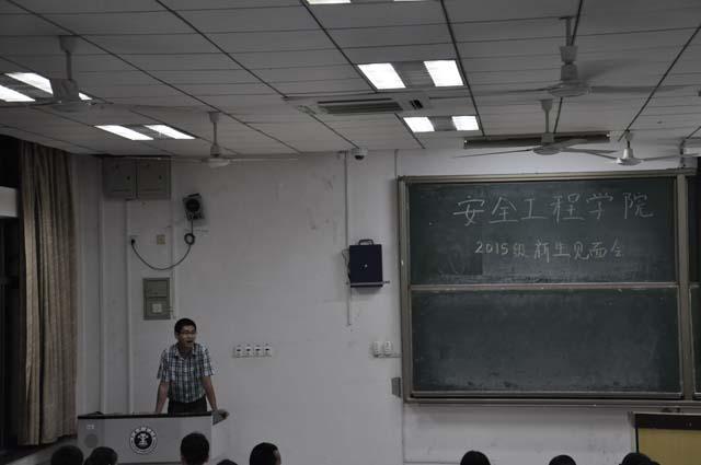见面会于晚上7点准时开始,在学院分发完员工手册后,便是孙老师风趣幽默的开场,调节了新生初来乍到的羞涩气氛,首先他提到上大学的真正意义,以及大学学习生活与过往的不同,并希望同学们能在新环境下、新生活中,明确自己的目标,找准今后四年的方向。其次是追溯矿大和学院的历史渊源和辉煌成就,以及学院概况和相关专业。再者是提醒新生努力求实,艰苦奋斗,寻找学习生活过程中的意义和感悟,处理好人际交往,学会学习,学会做人。最后让员工注意自身安全,保管好私人财产。孙老师话虽朴实却字字含金,句句在理,赢得了新生一阵接一阵的掌声。