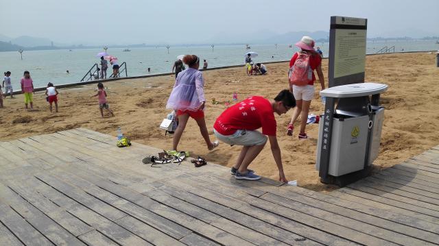 824日上午,“走向蓝天”社会实践团来到了云龙湖开展今天的社会实践,此次活动主要包含两个目,第一是向云龙湖周边的市民以及在云龙湖游览的游客宣传环保知识,第二是对云龙湖周边的环境进行卫生清理。上午8点整,“走向蓝天”社会实践团在云龙湖畔集合完毕,队长将实践团的成员按照每两个人一组进行分配,分组行动,力求能够实现最大程度的落实宣传目的。活动刚开始的时候,实践团的成员稍稍感到一丝害羞,不好意思向路人开口介绍此次活动,但在实践团队员陈威的带领下,成员们逐渐的大方起来,积极主动的向沿湖行走的人宣传环保的知识。小队成员首先有礼貌的向他们询问在平时生活中的环保措施,但当了解到大部分的市民表示并没有过多环保这方面的知识储备以后,小队成员耐心地向他们传授了一些实用的环保小诀窍以及注意事项,许多市民在听完实践团成员的宣传后,纷纷表示将会把今天学到的环保知识运用到生活中去,为环保出一份力。