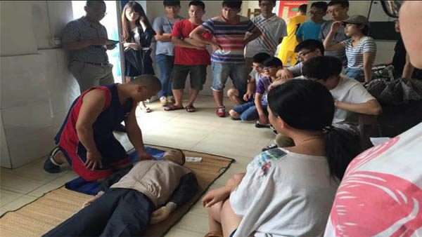 实践团随救护队长的引导,先后了解了有关矿井急救、互救以及自救的知识和方法要领。在学习期间,实践团成员们认真记录讲解内容,积极配合老师,与其进行互动。指导老师告诉在场成员,煤矿发生安全事故时,应当保持冷静,并运用所学到的急救知识尽最大可能减小伤亡系数。其中几个实践团成员还亲自进行了心肺复苏的演示,演示的对象虽然只是塑胶假人,但他们丝毫没有怠慢,一丝不苟的对待每一个动作要领。虽然实践团是第一次进行系统的急救知识学习,但看得出,每个人都能很好的掌握老师所讲解的知识要领。实践团的成员们秉着不懂就问的原则,在与老师互动的同时,也努力效仿老师的每个动作并尽力做到最好。