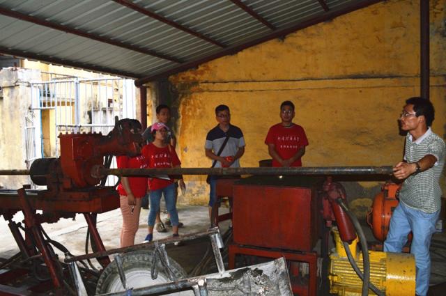 首先,陈老师带领实践团参观了煤矿安全生产调度指挥中心,向实践团解说每个监控画面对应的井下具体位置及作用,并强调调度中心对煤矿安全生产的重要性。面对调度中心一排排繁多复杂的器械和按钮,实践团不禁发出一片唏嘘。接着,一行人随陈老师参观了地面上的井下掘进设备,如履带式全液压钻机和普通钻机等。在陈老师的讲解下,实践团的同学们边听边做笔记,并在这之中学到了钻机的工作原理以及打钻过程中应对各种意外的急救措施,同时,陈老师还补充了在掘井过程中应当掌握的应急技术,并再次申明安全第一。