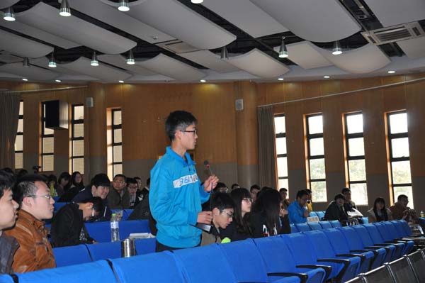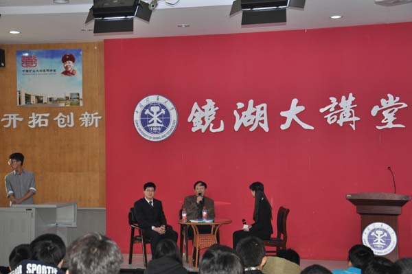 会议中,韩教授向同学介绍了中国环境污染的情况,对其危害划分了主次,并结合自己的生活经历,对比了中西方对待环境污染的态度、治理污染的方式。而郑教授就煤炭对环境的污染向同学们介绍了许多,并和同学探讨了煤炭行业的发展问题。在提问环节,同学们一一向教授提出心中的问题,“对于治理雾霾,我们能做些什么力所能及的事情”……安全学院青协的同学也向教授提出了“为何不将河北等重度污染地区的企业分散化”的疑惑。韩教授与郑教授结合中国的经济发展问题与执行力做出了解释。教授们的解答使同学们对环境污染有了更充分的认识,同时教授向矿大学子们介绍了煤矿行业精简的利与弊,与石油、天然气其他能源相比的优劣,指出环境污染并非煤矿开采本身的问题。