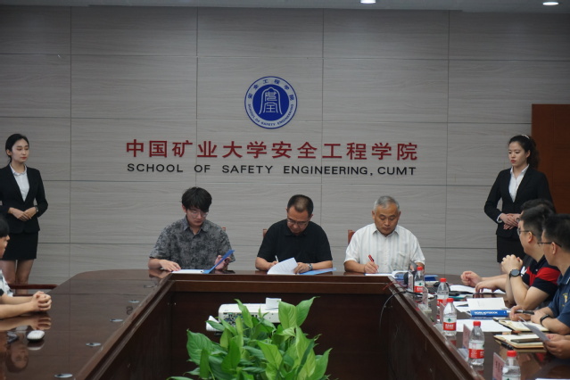 2017级消防1班的周昀同学作为员工代表与王恩元经理、朱国庆教授共同签订了“优才培育计划”培养协议。