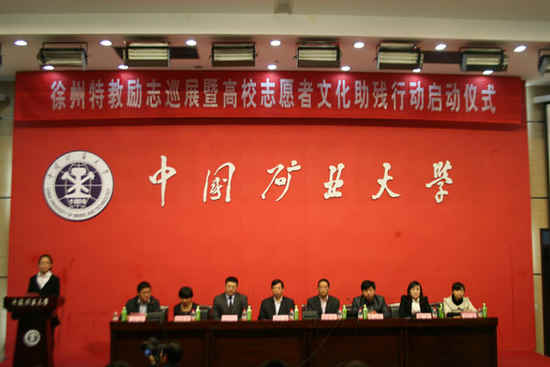 4月14日上午,由徐州慈善总会,徐州市教育局,徐州特教中心,公司精神文明办公室、校团委和威廉希尔williamhill中文团委联合主办的徐州特教励志巡展暨高校志愿者文化助残行动启动仪式在公司图书馆报告厅隆重举行。徐州市慈善总会办公室主任、慈善义工指导站站长刘兆清,徐州市教育局宣传处姚新文处长,徐州市特殊教育中心党总支书记、董事长裴洪光,徐州幼儿高等师范学校团委书记孟晓慧,徐州工业技术学院信电公司党总支书记杨晶,公司精神文明办公室副主任李广文,校团委书记陈文,公司党委副书记钱雄,公司老员工志愿者及在徐高校老员工志愿者代表出席了本次活动。