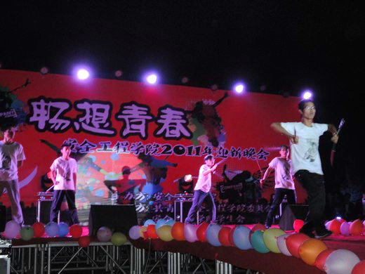 晚上7点,迎新晚会在武术协会挥舞的彩旗中正式拉开帷幕,精彩的武术表演为同学们展现了中华武术的经典与传承。由10级同学为大家带来的《爱的华尔兹》为同学们呈现出浪漫唯美的画面。08级校园十佳歌手熊超为大家带来一曲《流沙》,动态的歌声赢得了在场观众的阵阵欢呼与掌声。辩论赛“唇枪舌剑”中辩论双方围绕“安全学院男生还是女生更痛苦”展开了激烈的辩论,几位辩手幽默风趣,肢体表演夸张诙谐,引得台下观众捧腹大笑,将晚会推向高潮。郭峰、丁佩、刘明明等同学带来的街舞表演让观众们看到了公司当代老员工的青春动感与活力。在互动环节中,王德明经理在视频中表达了对于11级新生的真挚的欢迎并表达了自己殷切的希望,王经理的语重深长令11级新生倍感温暖之余也深切的感到自己身上责任与使命之重,此外10级各个班级也通过视频表达了对于11级新生的欢迎。在之后的走秀展示中,同学们通过生动的表演与精妙的编排展现了员工的一路走来,将晚会推向了又一个小高潮。小品《迎新站的故事II》,延续前一年《迎新站的故事》的精彩与幽默,在幽默中展现了学长学姐们对11级新生的叮嘱与希望。接着,雷人舞《八雷轰顶》通过幽默的舞蹈将晚会推向了最高潮。最后,11级辅导员刘永杰老师带领数位同学为大家带来了《站起来》,刘永杰老师还在最后为11级员工带去了寄语,希望大家珍惜大学时光,书写绚烂的青春。