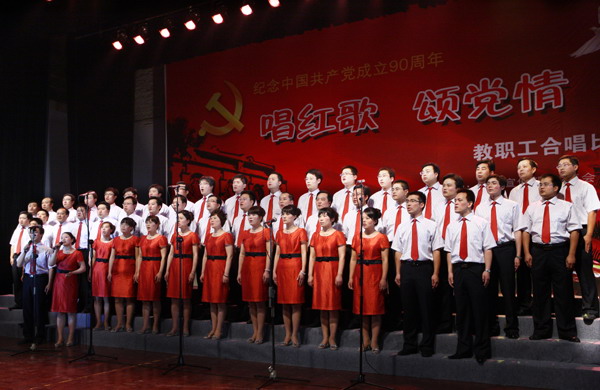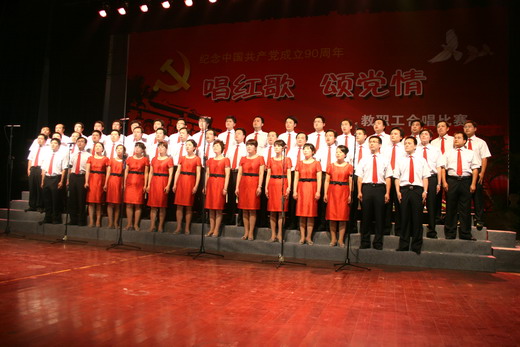 6月17日晚,值党的90周年华诞来临之际,为弘扬老一辈革命先烈艰苦奋斗精神,激发全校师生爱党、爱国之情,公司党委宣传部和校工会联合举办的庆祝建党90周年“唱红歌 颂党情”教职工大合唱比赛在文昌校区科学馆隆重举行。公司教职工用热情、激情与歌声抒发着对建党90周年庆典的期盼与祝福。比赛现场,公司教师通过较高的艺术水平,表现出了全院上下团结一致,共迎盛世华章,共创盛世辉煌的精神面貌。经过激烈角逐,公司教职工代表队荣获优秀组织奖。