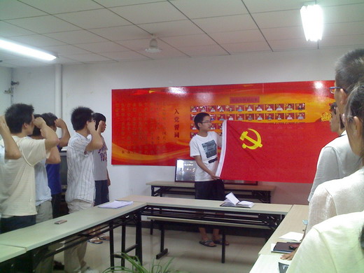 会议于晚九点正式开始。徐跃首先介绍了此次会议的流程。接着由张亚飞等八名发展对象分别介绍各自的对党性的认识、思想状况、生活学习等方面的状态。针对八名发展对象,党支部的各位同学对他们各方面进行了综合评价,提出了宝贵的意见,并对是否同意其发展成为预备党员发表意见。经过支部成员的充分讨论,与会党员进行举手表决,支部大会一致同意吸收张亚飞等8名发展对象为中国共产党预备党员。最后,在支部成员贾伟的带领下,全体员工党员进行了庄重的入党宣誓仪式。