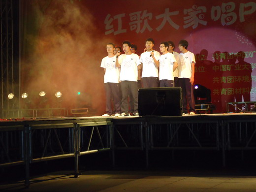 5月14日晚7:00,本年度老员工文化艺术节活动系列之“激扬情思,畅想未来”红歌大家唱PK赛决赛于二食堂广场隆重举行。从初赛、复赛中中胜出的12支代表队经过激烈角逐决出最终获奖队伍,公司武术协会主席薛瑞奇协同公司安全10-1班9位男生历经层层PK,终以90.2的高分荣获三等奖。