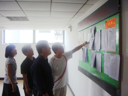 钱书记首先来到梅三一楼的活动室与自习室,然后仔细查看各楼层的公告栏和班级、宿舍的公告栏。钱书记对各班在楼道内的文化建设工作表示了肯定,尤其对消防08-1班公布在班级资源共享、交流讨论和阶段计划等方面给予了较高的评价。之后,钱书记亲切走访员工宿舍,对宿舍环境的进一步改善提出了不少建议,并告诫同学们应该养成良好的生活习惯,为自己以后的工作、生活打下坚实的基础。钱书记谈到,宿舍是员工活动最多的地方,一个良好的宿舍环境能更利于员工的发展,更利于诞生先进的个人和集体。学院应该重视宿舍区的活动室与宿舍楼自习室的建设和管理,为广大同学创造便利的学习、工作、课余活动的环境。对于宿舍公告栏,应做好及时的清理和信息的更新,以保证同学们及时了解学院学校的动态。