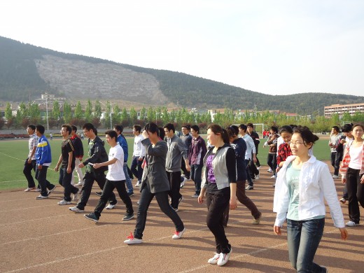 下午四点整,同学们准时到达第一田径场。负责人将方阵同学大致分为7行9列,按照人员身高错落排列,极为有序。没有太极训练时优美柔和的音乐,不变的是太极训练亟需的团结合作、整齐划一的精神。在负责人高昂的“立正、稍息、齐步走”口令中,同学们展开了积极的配合训练,以蓬勃的姿态投入到了操练过程中,精神饱满,昂首挺胸,起步有力,团结一致。待方阵进场仪式操练若干次后,负责人转而排练了届时公司方阵经过主席台时所需展现的两个方阵阵式:蓝底黄字的“90”与黄底蓝字的“安”,以热烈庆祝建党90周年以及彰显公司风采。尽管排练的过程极为繁琐,需要方阵同学一次次下蹲和起立,寻找最合适的站点,但同学们在训练过程中毫无怨言,积极配合,努力实践,表现极为出色,圆满地达到了方阵阵式的操练要求。在一个半小时不间断的方阵训练后,体育部部员为辛劳训练的方阵成员送上了矿泉水和巧克力,感谢成员们的积极配合和辛苦训练,本次操练圆满结束。