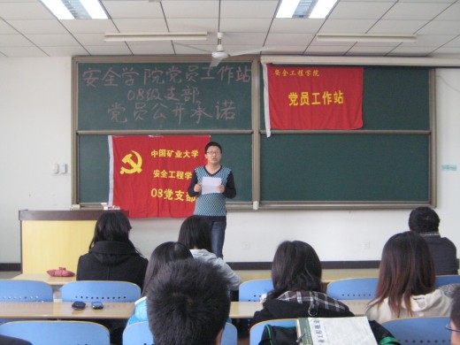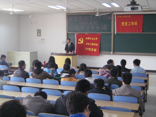 支部组织委员刘建安同学代表08级支部全体党员,在08级全体同学面前进行了郑重承诺。承诺内容结合公司党委要求和我支部实际情况,紧紧围绕“求真务实,落实本质基础工作”和“推进创先争优活动,开展支部特色活动工作”两个方面展开,并提出了诸如建立党员与同学学习生活“一帮一”小组、组建“互相监督”小组、建立“党员先行”交流会、设置支部信箱等一系列实事求是的措施,以求切实做到工作的透明化,树立起党支部的光辉形象。