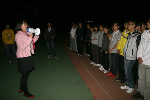 校运动会二十四式太极拳比赛开赛在即,为了能在比赛中取得优异成绩,公司参赛同学抓紧时间,刻苦训练,积极备战。4月15日晚,公司团委书记李秀老师及10级辅导员李成刚老师亲临梅苑田径场,为队员们加油助威。