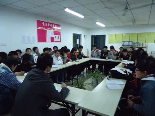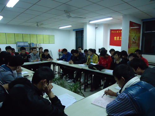 3月13日晚9:00,由公司知行社、党员工作站、10级各班预备党员、发展对象、入党积极分子参与的关于“两会”的研讨会于梅三五楼党员工作室顺利举行。本次研讨会由知行社成员张阳主持,知行社副社长刘治伟到场参加了本次会议。