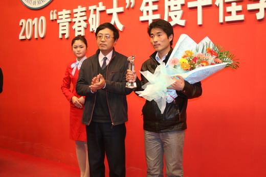 本次颁奖仪式以人物简介、宣读颁奖辞、获奖人物访谈的形式呈现,让观众重温2010年的一幕幕感动场景。公司安全09-3班李国芳同学在过去的一年里,感动了矿大,温暖了矿大,他用自己的善心温暖着他人,感动着他人。在颁奖典礼现场,李国芳同学在接受主持人采访时时动情地说道:“我也曾经有过无数的灰心与动摇,但我却牢记对逝去的父亲的誓言,尽管前进的道路有各种难以预料的困难,但只要拥有一个信念,并坚定地走自己的道路,一个人的精神食粮才是最有价值的。”简单朴素的话语深深地感动了在场的每一位观众。