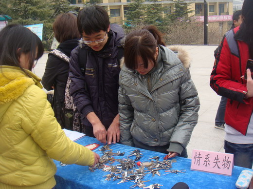 3月5日上午十点左右,公司青年志愿者协会成员来到第二食堂广场。他们首先将近期由拾金不昧的同学捡获的失物陈列在桌子上来等待失主认领,这些失物从钥匙链眼镜盒到数码播放器,数码相机不等,这里的每一件都显示了我矿大人拾金不昧的高尚品质,证明了雷锋精神在公司的继承与发扬。在认领失物的过程中,青年志愿者们对前来认领的同学态度温和地详细询问并一一记录在案,最后耐心地嘱咐失主今后要小心保管好自己的财物。从领回失物的同学的眼神中我们看到了失而复得的喜悦与对拾金不昧同学的感激之情。