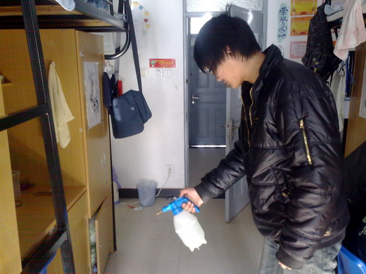 本次宿舍消毒使用84消毒液,主要针对宿舍的房间拐角处、垃圾桶、卫生间等平时不易注意到的地方以及同学们经常接触到的地方进行消毒。根据不同宿舍的情况及要求,工作人员仔细地为每个宿舍消毒,消毒后门窗紧闭30分钟,进行彻底消毒,之后开窗换气。在桃一女生宿舍中,生活部的女工作人员为每个女生宿舍进行消毒。为了自己的生活学习环境能更加舒适,消毒活动在同学们的积极配合下进行的井井有条,在有条不紊中结束了本次活动。