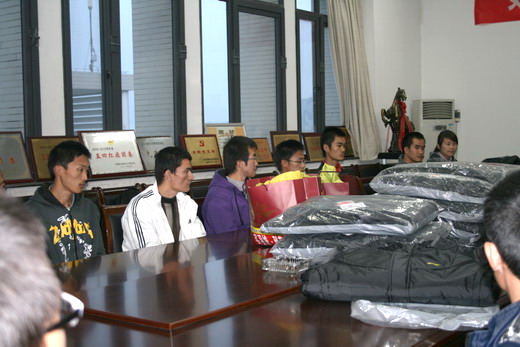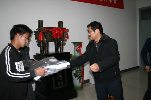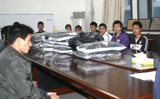 仪式上,钱书记和孙老师发表了简短讲话。钱书记表示,鉴于徐州气温变化大而且冬季寒冷,公司党政领导和辅导员老师考虑到部分同学家庭条件无法购买御寒衣物,难以抵御低温的侵袭,特为10级部分家庭经济困难同学发放寒衣,并嘱咐他们加强营养,保持身体健 康。同时,他勉励同学们刻苦学习,积极进取,争取早日成才,摆脱贫困。