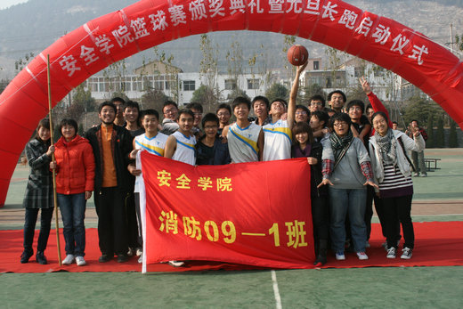 上午11::40,“安全杯”篮球赛决赛拉开了帷幕,消防09-1班与安全09-3班展开了激烈的角逐。经过了将近一个小时的鏖战,场上队员拼尽了全力为班级的荣誉而战,场下拉拉队同学也激情奋力的呐喊着,最终消防09-1班以39:29的比分战胜安全09-3班,登上了冠军的宝座。