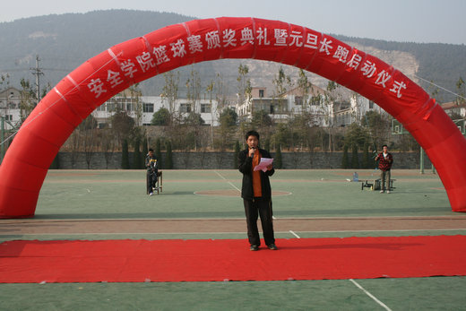 下午1时整,仪式正式开始。首先,安全学院的部分女同学表演了热情奔放的啦啦操,武术协会也带来了精彩的武术表演。随后安全学院员工会主席刘建安、副主席焦汉林同学,辅导员刘筱婕老师,团委书记李秀老师先后为获得篮球赛前六名的班级颁奖,在场同学们纷纷以热烈掌声对这些获奖班级表示了衷心的祝贺。颁奖典礼结束后,体育部部长侯宗廷做了简短发言,他向大家介绍了接下来的学院体育工作的安排,并鼓励大家积极参加学院或学校组织的各项体育活动。