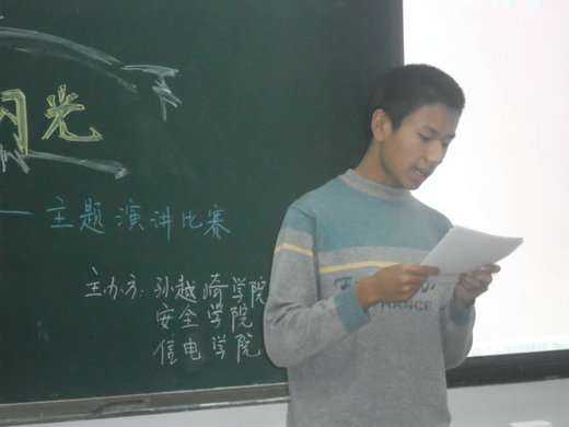 10月21日晚七点,由公司、信电学院、孙越崎学院合办的“让青春在这里闪光”主题演讲比赛在教五A302、303隆重举办。比赛由唐山川、李丹萍同学主持。